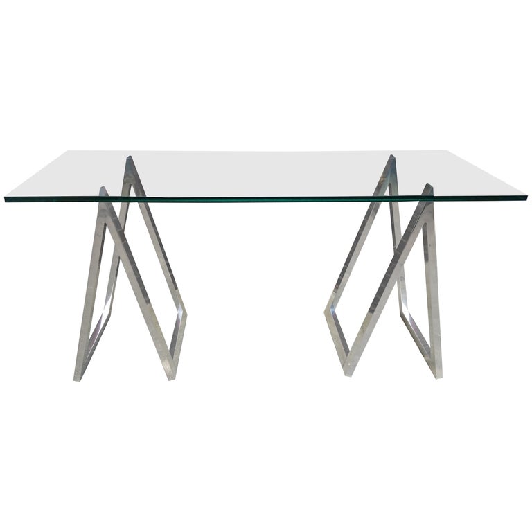 Chrome Saw Horse Leg Desk With Glass Top At 1stdibs